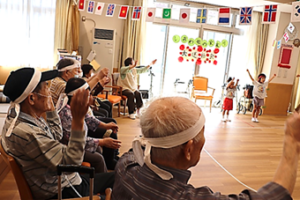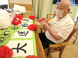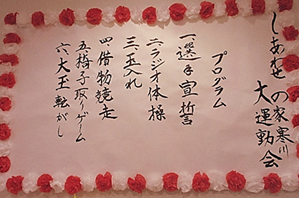9月から万国旗やプログラム作りなど、ご利用者の皆様にもお手伝いしていただき、運動会の雰囲気作りは万端です。