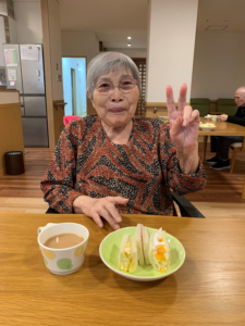 フルーツサンドを初めて食べられた入居者様もいて「美味しかった♡」と大変喜んでいただけました。