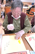 11月7日にしあわせの家寒川の文化祭が開催されましたが、今年の文化祭はデイサービスのご利用者様の作品を展示することになり、日頃行っている塗り絵はもちろん、壁画や習字など文化祭に向けて準備しました。