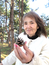 紅葉の中を軽やかに跳び跳ねる鹿やリスが可愛らしく、秋にちなんだ俳句や童謡の歌詞を添え完成!