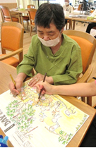 11月7日にしあわせの家寒川の文化祭が開催されましたが、今年の文化祭はデイサービスのご利用者様の作品を展示することになり、日頃行っている塗り絵はもちろん、壁画や習字など文化祭に向けて準備しました。