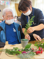 11月20日、花育ボランティア「花笑み」の方に来ていただき、3回目のフラワーアレンジメントを行いました。