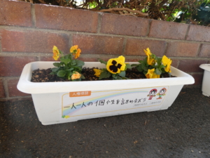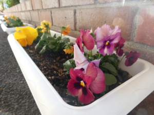 先日、ご縁があった三島南中学校の皆様より、パンジーの鉢植えをいただきました。