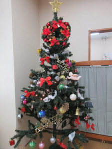 ちなみに、飾っていたクリスマスツリーを紹介します。たくさんの飾りが施され、「きれいだね」と利用者様から高評価をいただきました。