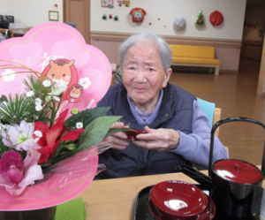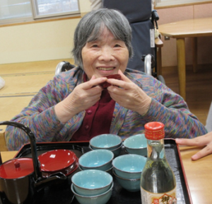 書初め・羽子板・コマ回し・お屠蘇・初詣などなど、様々な正月行事がありますが、施設で少しでも正月気分を味わっていただくため、各フロアでお屠蘇や書初めが開催されています。