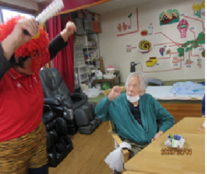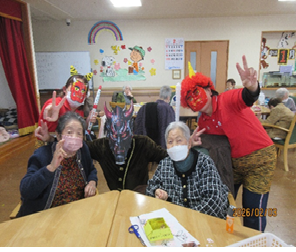 今年も節分の日にデイサービスへ鬼がやってきました。昨年は巨大な鬼がおりましたが、今年はどんな鬼が現れたのでしょうか!?